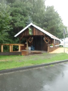 Es werden Pfähle gestrichen, Fähnchen und Tücher in Bentheimer Farben vorbereitet und -man erkennt es in Hintergrund und auf dem folgenden Foto- Sturmschäden ausgebessert: