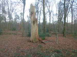 Das noch relativ junge Projekt führt uns bekanntlich zurück in die historische Waldnutzung. Rinder, Ziegen, Schweine besiedeln wieder die 26 ha große Waldfläche mit gekappten Buchen, finden dort Nahrung und Lebensraum und sorgen  wieder für Weideflächen mitten im Wald. Interessant anzusehen sind die von Menschenhand zunächst hergerichteten Waldflächen (unten), in deren Randbereichen zudem immer noch skurile Baumruinen zu bewundern sind (oben): Das Projekt entstand in enger Kooperation zwischen Besitzer, Landes- und Kreisbehörden sowie dem Tierpark Nordhorn und ist für den Verfasser dieses Blogs ein besonders gelungenes und vorbildliches Beispiel für Zusammenarbeit auf kommunaler Ebene. Weitere Aktivitäten könnten folgen. Wie wäre es beispielsweise mit einem Wildgehege im oder am Bentheimer Wald. Rotwild, Wildschweine und Fuchs und Hase einmal dort aus der Nähe erleben, wo sie sich Guten Tag sagen. Das wäre bestimmt ein weiteres lohnendes Ausflugsziel!