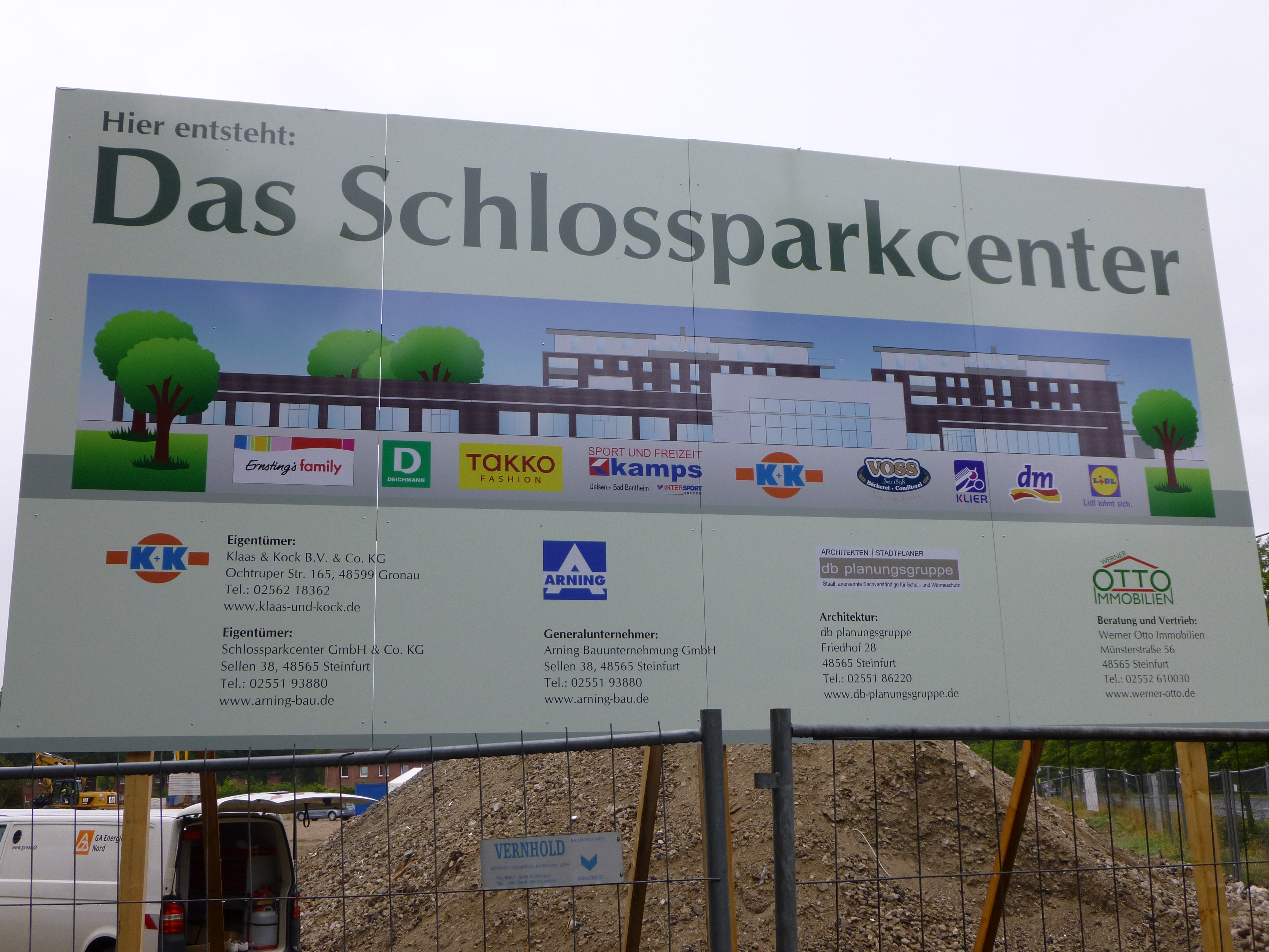 Bauflächen, Geschosshöhen, Zuwegungen und viele Details waren heftig diskutierte Themen mit guten Ergebnissen im Bauleitverfahren zum Projekt. Es bleibt eine andere Sorge, nämlich die Sorge um eine wirklich ansprechende Gestaltung des Centers an exponierter Stelle in der Stadt, nämlich direkt an der L 39 und in der Nähe des Schlossparks mit Sicht auf den Park und die Burg. Eine Sorge, die trotz ansprechender Bauzeichnungen und der Hinweise im Vorfeld bestehen bleibt. Wird der Bauherr tatsächlich für ansprechende Architektur sorgen? Müssen wir an dieser Stelle nach der misslungenen Gestaltung der Ortseingangssituation bei Combi-Aldi-Lidl mit einer weiteren städtebaulichen Last leben? Schauen wir uns die Ansichten vergleichbarer Center in Schüttorf an, dann wird diese Sorge verständlicher: