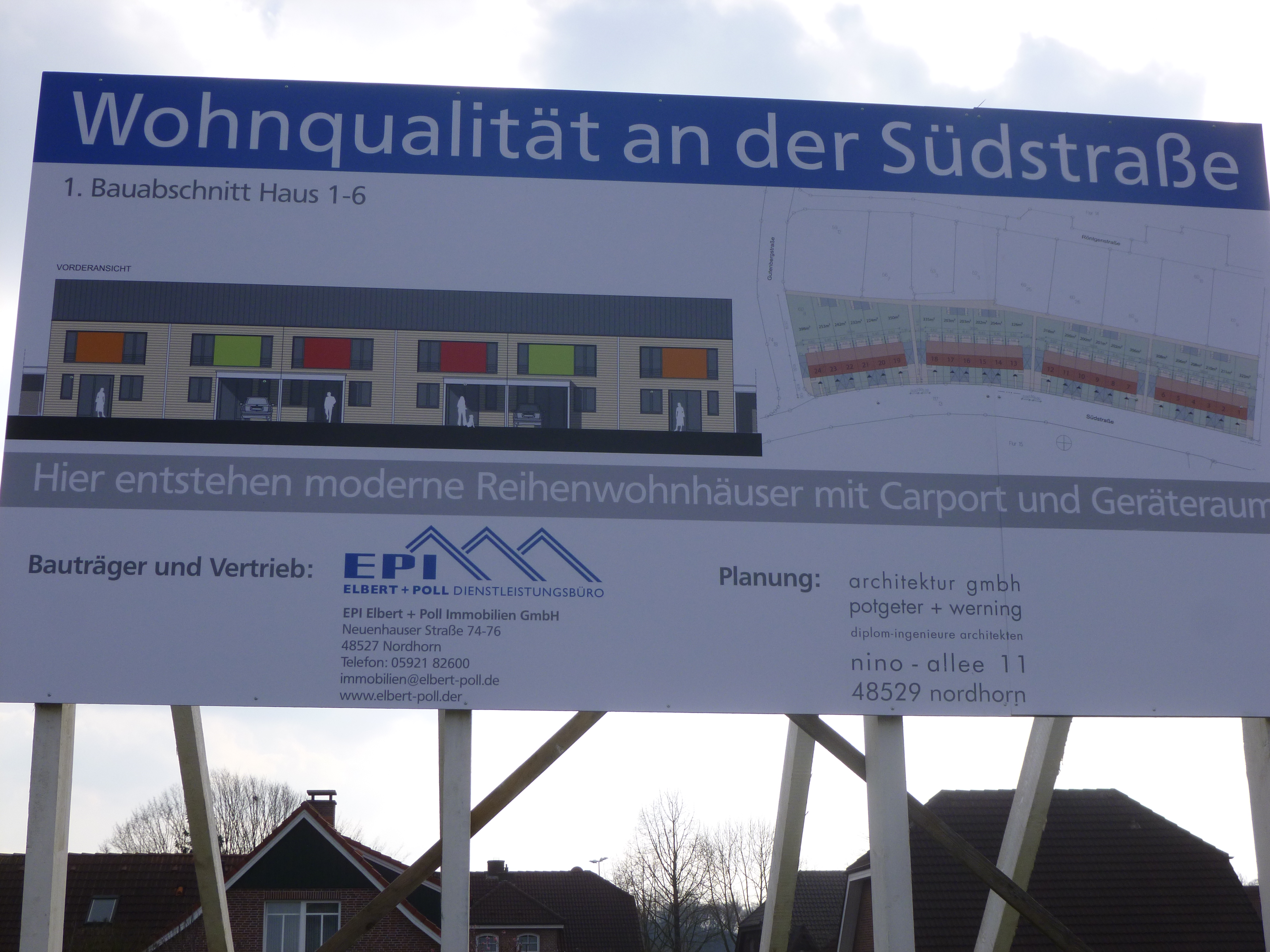Unweit davon, aber ebenfalls an der Südstraße die Reihenwohnhausbebauung als Alternative zum Einfamilienhaus: