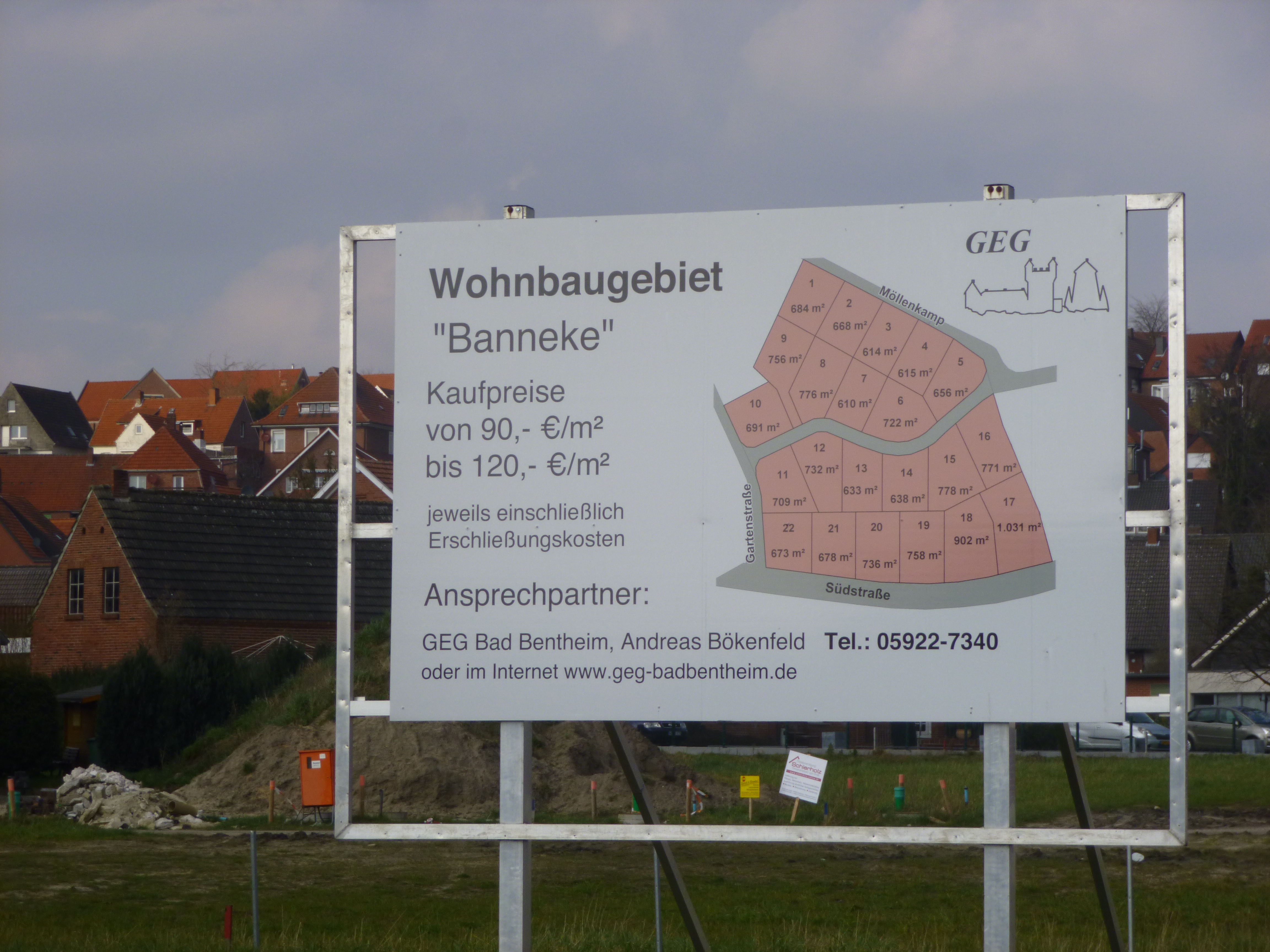 Angemessenes, vor allen Dingen bezahlbares Wohnen ist ein weiterer wesentlicher überaus positiver Standortfaktor und ein „Wohlfühlargument“ für Bentheimer. Das ist so und so wird es bleiben!  Eine ganze Reihe der folgenden knapp kommentierten aktuellen Bauschilder  dokumentieren dies.