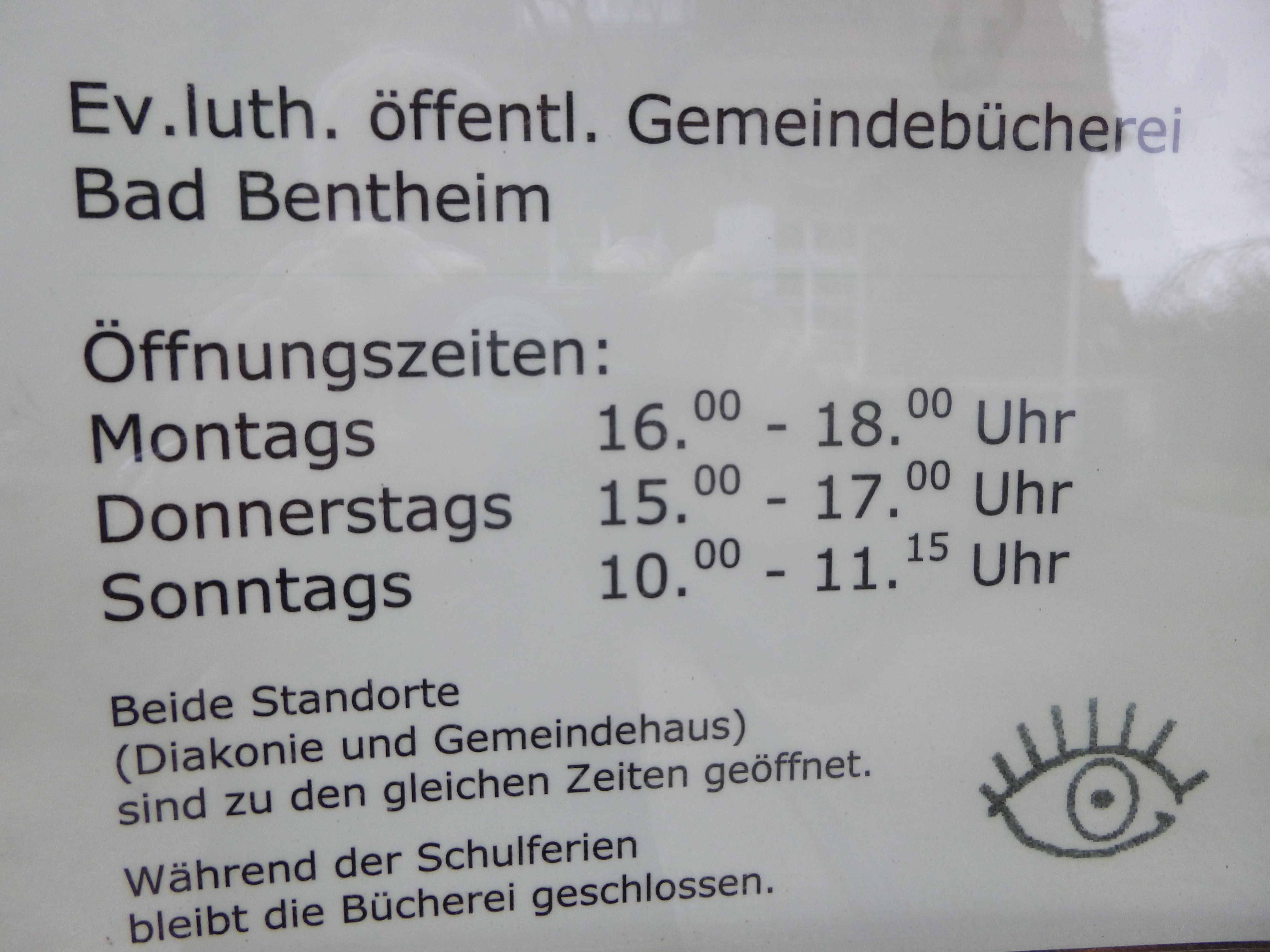 Noch spielen Buchläden und auch öffentliche Bibliotheken eine Rolle, wenngleich laut JIM-Studie nur 4% der Mädchen und 2 % der Jungen Bibliotheken überhaupt nutzen. Am „Welttag des Buches“ möchte ich aus diesem Grund für die Bentheimer Stadtbibliothek werben. Die öffentliche Bibliothek für Jugendliche im Gemeindehaus der Martin-Luther-Gemeinde in der Schüttorfer Straße ist sehr gut geführt, lebt auch vom tollen ehrenamtlichen Engagement der Mitarbeiterinnen und findet verdientermaßen die Unterstützung durch die Stadt. Also, hier als Anregung zum Büchereibesuch ein Eindruck sowie die Öffnungszeiten: