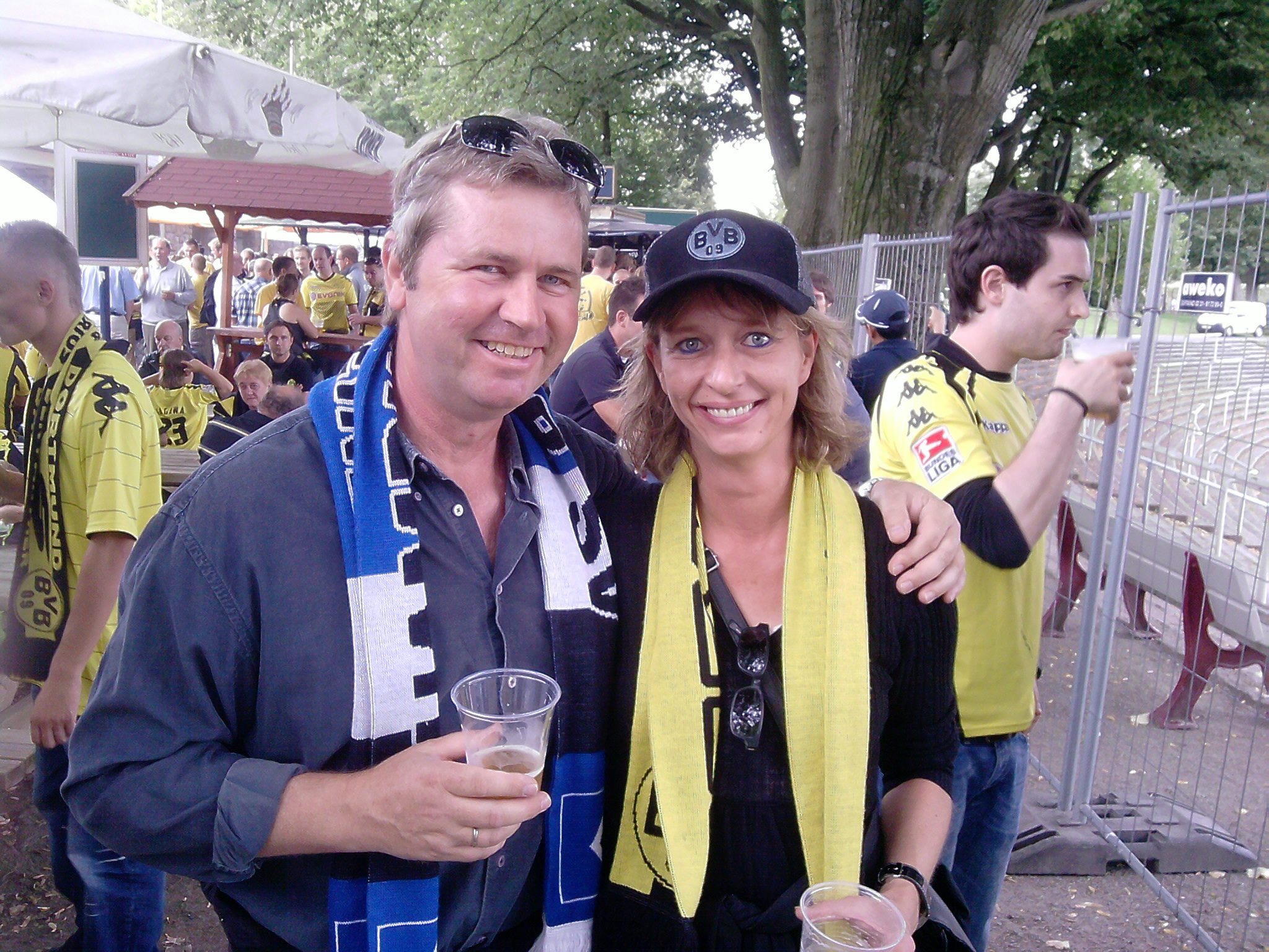 Und wenn uns gerade einmal nicht packende Partien oder auch Grottenkicks fesseln oder wenn uns gerade nichts Nachdenkliches zum Fußballsport einfällt, dann erinnern wir uns möglicherweise an vermeintlich bessere Zeiten. Zum Beispiel an Auswärtsspiele in Dortmund, die mit einer Erfrischung vor dem Spiel am alten Stadion „Rote Erde“ in lebenslanger Fanfreundschaft begannen und mit einem fröhlichen Nachspiel im Kreise BVB-Ultras am Bierstand an der Reithalle in aller Fußballerfreundschaft endeten.